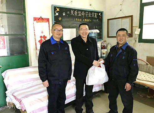 2月1日大年初一,公司領(lǐng)導(dǎo)又分成2個(gè)小組,公司領(lǐng)導(dǎo)方念實(shí)、高洪昆,前往公司老區(qū)看望慰問節(jié)日期間加班職工;公司領(lǐng)導(dǎo)左福祥、沈利興,前往馬金鋪新區(qū)看望慰問節(jié)日期間還在加班堅(jiān)守生產(chǎn)崗位的職工,為職工送上節(jié)日慰問品,感謝他們?yōu)槠髽I(yè)所作出的辛勤奉獻(xiàn)。